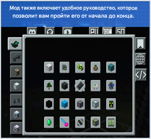Мод вводит космос, но не в стиле легендарного Galacticraft. Вместо этого он реализован в виде системы исследования, где можно основывать колонии, управлять ими и развивать их население для добычи различных руд и жидкостей.