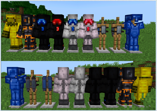 Мод предлагает широкий выбор брони — от базовой до энергетической (нано-спектральной). Вы также можете летать с помощью реактивного ранца и заряжать предметы через энергетический ранец. Кроме того, броню можно использовать для защиты от вулканических газов и радиоактивности.